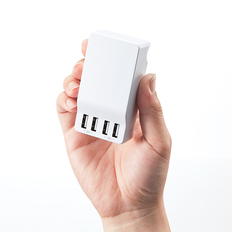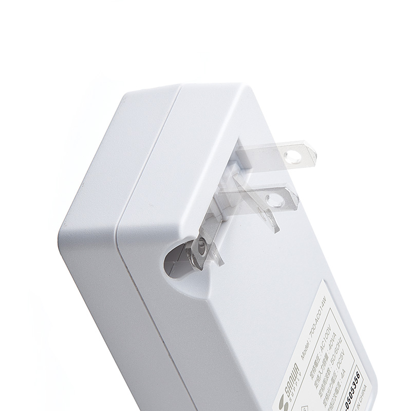 幅4.9cm、高さ9.1cmのコンパクトサイズで、コンセントのプラグの部分も格納式で収納時にも邪魔にならない。これなら出張や旅行時にも気軽に持ち出る。