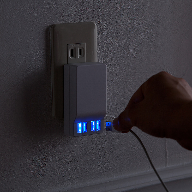 4ポートすべてに出力自動判別機能“Smart USB System”を搭載しており、ポートに接続された機器を自動的に検知。機器に合わせて2Aまでの最大出力で急速充電してくれる。