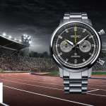 今回の記念限定モデルでは、選手たちが熱いレースを繰り広げるトラックの質感を表現したブラックを基調とした砂目調のダイヤルを採用。クロノグラフ秒針と9時位置の30分積算計にはセイコーの計時を象徴する鮮やかなイエローを配し、デザインにアクセントを加えています。また、シースルーバックには大会のエンブレムをデザインするなど、特別な限定モデルに仕上げられています。