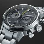 適度な厚みと重さで、重心を下げたケースと相まって高い装着性を実現する新開発のステンレススチール製のメタルブレスレットのほか、ステッチや裏材にイエローを使用したカーフストラップがオプションで付属。全世界で400本(国内100本)の限定発売です。