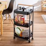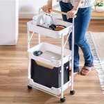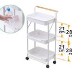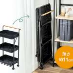 この「キッチンワゴン」最大の特徴は、折りたたみができるということ。使わないときはパタッと折りたためば、わずか11cmの薄さにサイズダウン。キッチンやリビングなどの限られたスペースや、家具の隙間などにも収納でき、場所をとりません。