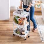 バスケットの底は 野菜はもちろん、衣服やタオルなどの収納に適した通気性の良いメッシュ仕様。2段目と3段目のトレイの間が21cmあるので、500mlのペットボトルのような高さがあるものでも収納しやすく、取り出しやすいのもうれしいポイントです。