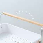使用時のサイズは、W440×D280×H815mm、 折りたたみ時のサイズは約W110×D90×H920mm、重量は約3kgで、総耐荷重20㎏です。ナチュラルな印象を与える木製の取っ手に、小回りの利くキャスターが付属されています。