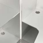 デザインはアルミ家具デザインのエキスパート、ATELIER OPA(アトリエ オーピーエー)の鈴木敏彦氏が手掛けており、これまで四角が主流であったアルミハニカムパネル製の家具に曲線を取り入れており、デスクや脚元の棚が優美なラインが特徴的です。さらに、国産のアルミ板が生み出す美しいシルバーの輝きにより、光が穏やかに反射されるため、デスク環境を明るく保ちます。
