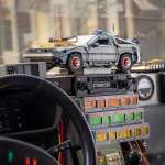 ダッシュボード部分には“目標時刻・現在時刻・前回の出発時刻”を並べて表示するタイムサーキットや、開閉するガルウイングのドアやボンネット、光る次元転移装置に加え、最初の動力として使われた小型の原子炉、生ゴミを動力にするミスター・フュージョン、飛行モードの際に折りたためる要改良された車輪など細かい装置をディテール細かく再現。