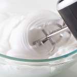 まずは泡立てが得意な“フラットビーター”を高速回転させて、空気をたっぷりと含ませたら、次は混ぜるのが得意な“ワイヤービーター”を取り付け、低速で生地のキメを整えましょう。