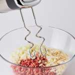 珍しい形状の第3のアタッチメント“フック”は、こねるのが得意。ハンバーグやイワシのつみれなどを調理する際に、食材と調味料を滑らかに混ぜ合わせられます。こんな風に調理方法に合わせてアタッチメントを付け替えるだけで料理の仕上がりに違いが表れること間違いなし。このひと手間が美味しさをアップさせます。