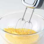 ケーキの生地作りは、高速で一気に攪拌し、空気を含ませてボリュームを出すのがポイント。そのあとは徐々に低速に落として泡のキメを細かく均一に整えることで、ふっくらとした生地に仕上がります。通常のハンドミキサーは、回転速度を落として調整することしかできませんが、「ベーシックハンドミキサー2500JP」はアタッチメントを付け替えられるので、理想的な状態に誰でも簡単に仕上げられます。