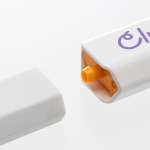 再生樹脂を用いたプラスチック製のケースに入っており、ケース下部のツマミをくるくる回して消しゴムを出す繰り出し式を採用。