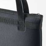 バッグ上部はファスナー付きで、万が一逆さまに持ってしまったとしてしても、ノートPCが落下することを防止。横入れタイプのバッグで持ち運ばなければならない場合でも、ファスナーをしっかり閉じておけば安心です。