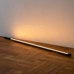 長さのある「gram eight ネオマンクス LEDバーライト」は、例えば大型テレビの背後を照らすシアターライティングにうってつけ。影になりやすいテレビ背面の壁を上向きに照らすことでテレビの発光面との明度差が少なくなり、画面がぐっと見やすくなります。背の高い収納家具や棚などがあれば、上向きに設置してアッパーライトとして天井を照らすのもいい感じ。