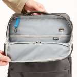 このほか開口部のジッパーは市販の錠前の取り付けに対応、背面にはキャリーケースのハンドルに通せるキャリーオンスリーブを装備するなど、ディティールにも出張時に役立つ工夫が満載。