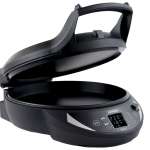 フッ素樹脂加工が施されているので、汚れがつきにくく衛生的。使い終わったプレートは取り外して洗えるので、お手入れも簡単です。サイズは閉じた状態でW320×D410×H185mm、重さは約4.1kg。上プレートには開け閉めするためのハンドルが付いています。