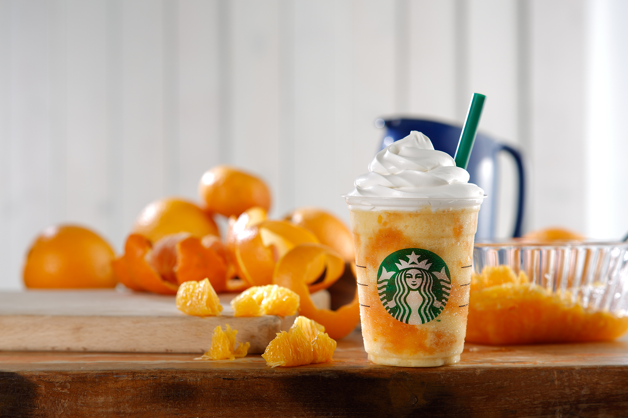 それぞれ個性の異なる3種類のオレンジを使用することで、冷たさと甘さの中に奥行きのある風味とコクを楽しめるデザートドリンクに仕上がった。濃淡のオレンジで彩られたドリンクのマーブル模様と、トップを飾る真っ白なクリームのコントラストの楽しさも、夏気分をいっそう高めてくれそう。
