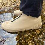 着脱しやすいのもポイントです。被せる際は甲部分にあるファスナーを開き、つま先から靴を入れ、靴下を履くように引き上げるだけ。最後にシワを伸ばしてファスナーを引き上げます。もちろんファスナー部分に雨がかかっても浸水しない構造です。