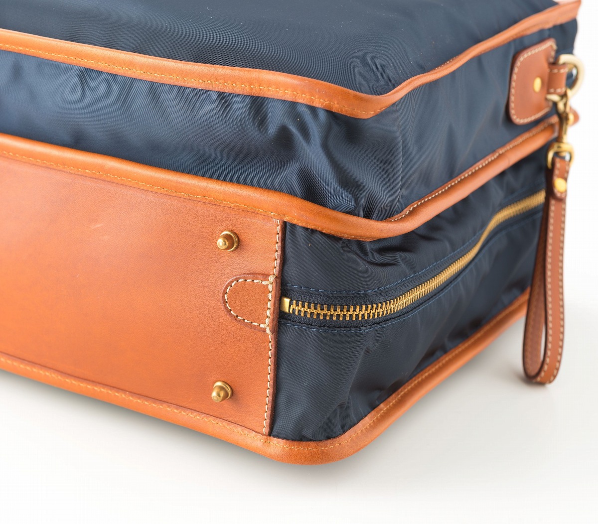 ・本体右側面のレザーストラップで、機内頭上ラックに収納したバッグが片手で取り出しやすい