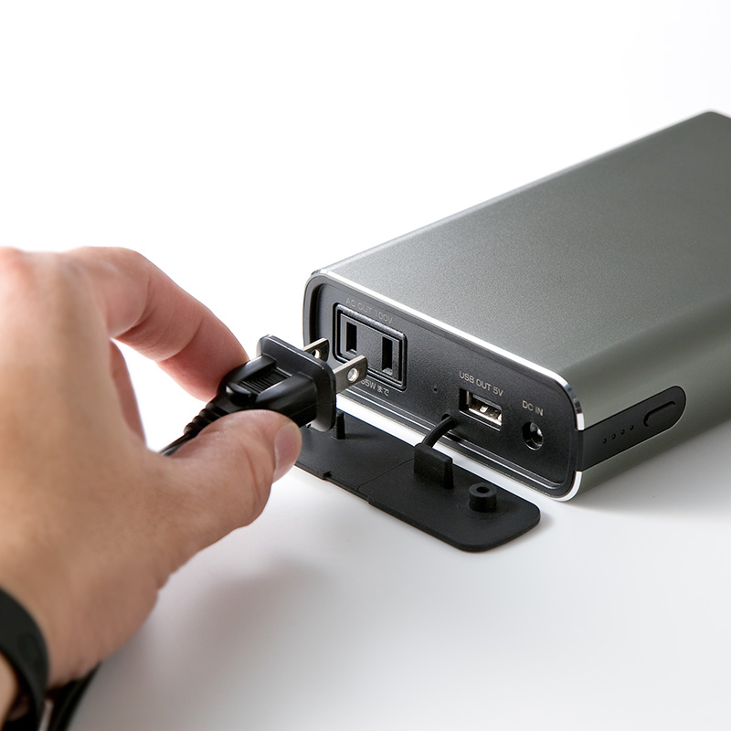 また、パソコンのほか、デジカメやビデオカメラ、携帯ゲーム機、電動工具の充電など、消費電力が65w以下の機器であれば幅広く使うことができるので、旅行やキャンプ時などにも活躍しそう。