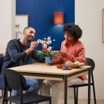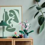 組み立てると青い円筒形の花瓶から伸びる緑の茎に、白とピンクの大きな6つの花と開きかけの2つの花が咲いた胡蝶蘭の姿が完成。“幸福が飛んでくる”という花言葉を持ち、祝い事によく贈られる胡蝶蘭の華やかさが表現されています。
