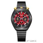 「AN3668-55W」(3万5200円)は、文字盤の赤&黒のカラーリングに加え、りゅうずとプッシュボタンにイエローを配置して“ダース・モール”を表現。キャラが持つ荒々しさを少し抑えたポップな仕上がりです。
