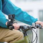 GoProをバイクやスノーボード、自転車のヘルメットに装着して撮影できる「AC-MBHE01BK ヘルメットマウント」(1980円)は、滑り止めパッドと2本のアジャスター付きベルトにより、カメラがズレないよう固定。撮影者の目線に近い臨場感ある撮影ができるので、多様なスポーツの迫力ある主観撮影に利用できます。