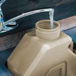 どの面を底にして置いても安定する設計で、水を入れる際は大きな蓋を開け広口を真上にしておけば水が入れやすく、運搬時はハンドル面を上にするように持ち運べます。
