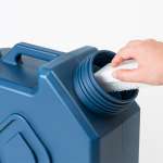 広口のほうは手が入る大きさで、タンク内を洗いやすいところもポイント。常に衛生的に保ちやすいだけでなく、ウォータータンクとして使う前にキャンプ用品を中に入れておき持ち運ぶという使い方もOK。