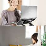 対応するノートPCのサイズは約11~15.6インチと、一般的なサイズのPCやタブレットなどを使用可能。付属の六角レンチを使えばアームの強さを調節できるので、少々重いノートPCでも設置できます。本体の重さは800gで、使わないときは折りたたんで薄くできるので、置き場所にも困りません。