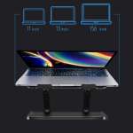 高さを最大36cm、角度を180度調節でき、操作しやすい角度や高さにノートPCを固定できる「Flextand」。滑り止めパッド付きでノートPCがズレにくくなっています。