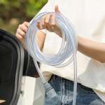 また、長さ6mの自吸機能を搭載した給水ホースが付属されているので、水道がない駐車場などでもバケツに水を入れて持っていけば使えます。
