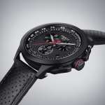 スペックと仕様は3モデル共通。時計ケースはブラックPVDコーティングを施した316L ステンレススチール製+カーボンコンポジットを採用し、サイズは45mm径×厚さ11.62mm、重さは105g。ケースバックには大会ロゴが刻印されています。