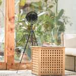 また、設置方法も自由に選べるのが特徴で、扇風機本体をテーブル等に直接置けるだけでなく、付属のカラビナで吊り下げたり、同じく付属されるアルミ製三脚と組み合わせて好みの高さ(530~1210mmの範囲内で無段階調節が可能)で設置できるなど、さまざまな使い方&設置方法に対応します。