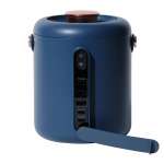 この「ランタン付きポータブルバッテリー」は、日常生活の中でカジュアルに使いこなせることを目指して設計された携帯型バッテリー。本体は直径138mm×高さ163mmの円柱状で重さは約1.7kg。にぎりやすいハンドル付きで、子どもやお年寄りでも難なく持ち運べます。