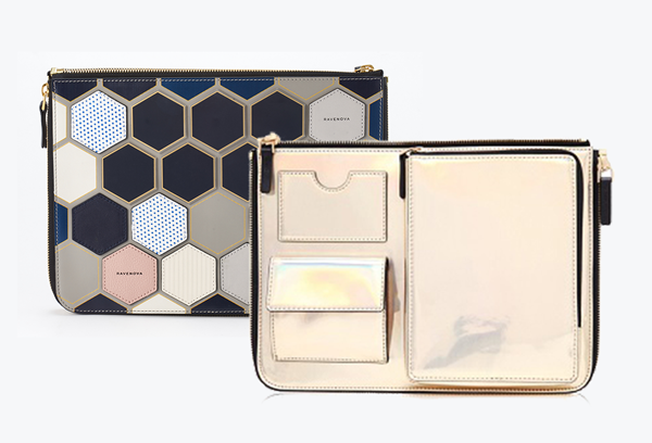 「SOL BAG」は、 Samsung C&Tのファッションブランド「RAVENOVA(ラベノバ)」が手がけたアイテム。バッグ表面のハニカム模様の中に、7つのソーラーセルが配され、太陽光エネルギーでスマートフォンなどを充電してくれます。