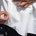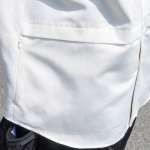 表にファスナーの歯が目立たないよう、コンシールファスナーを使っているほか、膨らみやたわみが目立たないようデザインでも工夫を凝らし、シャツのシルエットが崩れないようになっています。