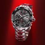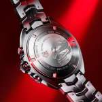文字盤やブラックセラミックベゼル、インダイヤル、リューズの鮮烈なレッドがアクセントに。
