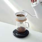 使い方は簡単。「POURX OURA」の上にサーバーとドリッパーをセットし、あらかじめ計量しておいたコーヒー粉を入れます。そして「POURX OURA」本体搭載のLEDランプが白く光ったら注湯スタート。注湯を始めたらLEDの点滅色が緑に変わり、タイマーが自動的に動き出します。