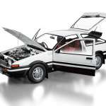 その再現性は本物さながらで、ハチロクトレノの特徴である飛び出すリトラクタブルヘッドランプからサスペンションまで、実車の構造やパーツ設計を忠実に再現。