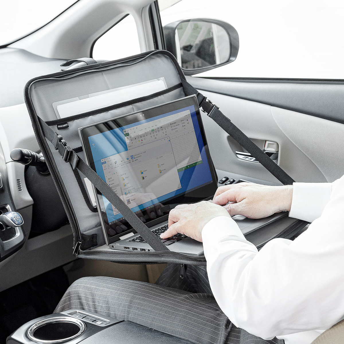 今やノートPCがあれば、どこでもワーキングスペースになる時代。自宅のダイニングテーブルやカフェはもちろん、車の中だってパソコンを広げれば仕事ができますよね。でも、膝の上にパソコンを載せたままでは不安定。画面を見るのもキーボードで入力するのもなかなかつらい。
