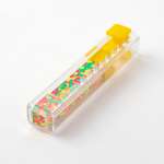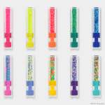 「デコレーションクレヨン」の特徴は、全10種類のカラーバリエーションの豊富さ。透明感のある蛍光カラーの「ピンク」「イエロー」という単色は2種類、残り8種類はすべて複数のカラーチップがモザイク状に散りばめられており、予測できない色の重なりの美しさを楽しめます。