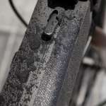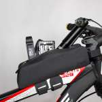 面ファスナーで装着するタイプなので、どんなフレームにも装着可能。短辺側にも面ファスナーがついているので、ヘッドチューブやシートチューブに固定すれば、動く心配もありません。また分厚く丈夫な600D生地をしているため耐久性に優れ、破れにくく汚れにくいのも特徴です。