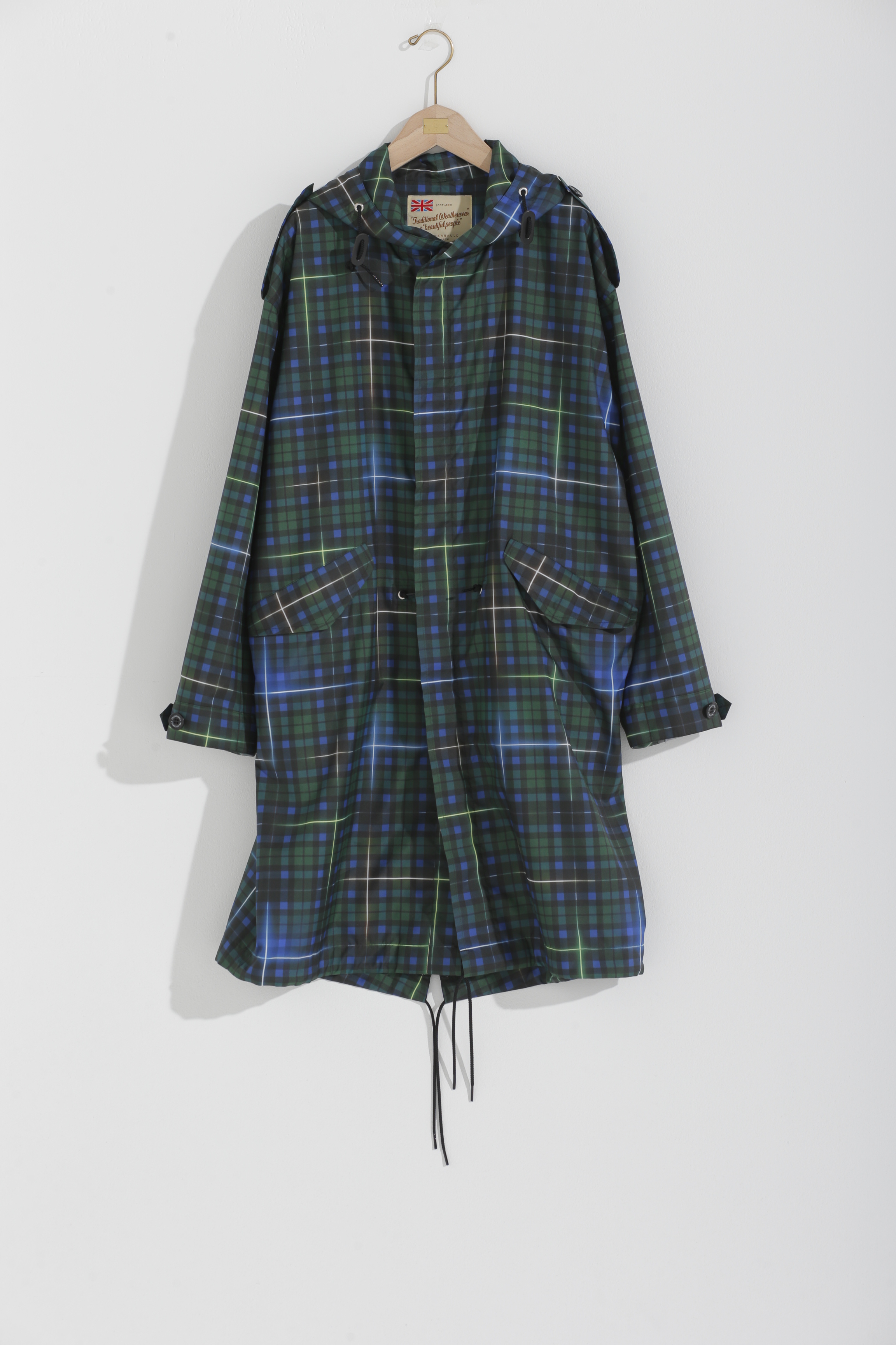 今回の3アイテムに共通して使われているファブリックは、伝統的なチェック柄と現代のスポーツ感覚の融合がコンセプト。伝統的なダークグリーンのブラックウォッチ柄にきらりと輝くラインを走らせ、クラシックでありながら、新しさを感じるチェック柄に仕上がっています。