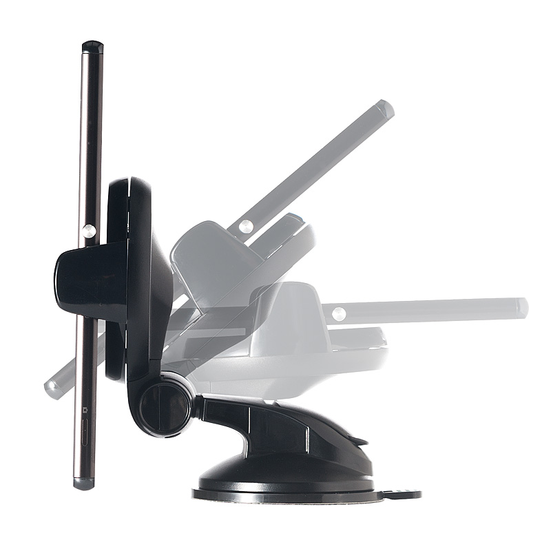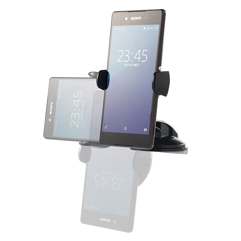 そんな難点を克服した「200-CAR040」は、アーム部分がぐるりと動くことで上向きにも下向きにも取り付けが可能に。また、スマホを挟んだホルダー部も360度回転するので、スマホを縦向きでも横向きでも使うことができます。さらに、前後にもスイングするため、ベストな角度を選ぶことが可能です。これなら、運転席、助手席のどちらからでも見やすいベストポジションにラクラク調節することができます。