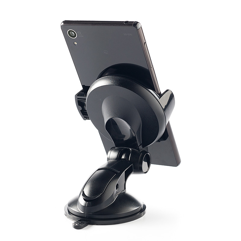 設置も実に簡単。ホルダーの中心にあるワンタッチホールドボタンにスマホを押し当てるだけで、自動的に機器を挟み込んでくれます。ホルダー部は6.4cm~8.8cmまで開くので、大型のスマホやケースをつけたままでも大丈夫。