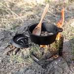 アウトドア調理に欠かせない「ダッチオーブン」(4620円~2万9700円)は、従来品の鍋底についていた3本の脚をなくすことによって安定性アップ。焼く、煮る、炒める、蒸す、揚げるなどマルチに使え、鋳鉄がじっくりと熱を伝えて食材のうまみを引き出します。
