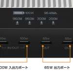こちらは4つのType-Cポートのうち、2ポートが最大100W、2ポートが最大65Wの出力に対応。ノートPCとタブレットの両方を持ち歩く人ならかなり頼れる存在です。さらに入力ポートも100W対応なので、内蔵バッテリーの充電もスピーディ。例えば「HyperJuice 245W GaN Charger」経由で充電すれば、最速1時間でフル充電状態にすることが可能です。