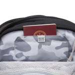 また、RFIDリーダーを使ってのパスポートやクレジットカード情報を盗む“ID窃盗”対策もバッチリ。RFIDsafeブロック素材を使ったポケットを装備し、データも守ってくれるのです。