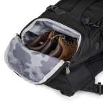 バッグの下部には独立した収納スペースがあり、ジム用のシューズなど、ほかの荷物と分けておきたいモノの収納に使えます。また、サイドにはコンプレッションストラップが付いているので、ヨガマットなどかさばるものも挟んで持ち運べます。