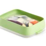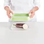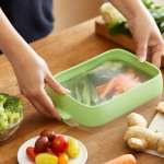 トレーの上に食材を載せ、シリコンラップが付いた蓋を上からセットするだけで密閉完了。厚みのある食材ならトレーを裏返してフタをすればOK。切れない、くっついて剥がれない…といった“ラップあるある”を省けるのはもちろん、ラップと同様しっかり密閉できます。