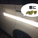 本体の内部にはマグネットが2つ内蔵されており、車にペタッと貼り付けたり、テントの骨組みに曲げた状態で設置することも可能。マグネットが付かない素材には、ライトの真ん中に付いている面ファスナーを対象物に巻き付ければ取り付けられます。