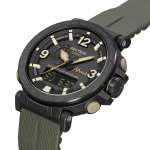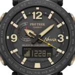 ベースとなっているのは、視認性が高い51.6×51.5mmのビッグフェイスデザインを用いた、PRO TREKの電波ソーラー時計「PRW-6611」。ケース、裏ブタ、バンドの素材に再生可能な有機資源由来の物質を含み、CO2排出の抑制にもつながるバイオマスプラスチックを採用しているのも特徴です。